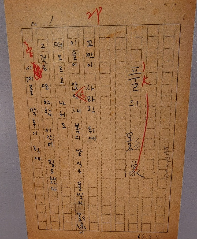 이곳은 김수영의 삶의 궤적을 연대순으로 만나볼 수 있는 공간이다. 김수영 연보 및 6·25 전쟁과 4·19 혁명, 5·16 쿠데타 등 현대사의 질곡을 겪으며 그가 온몸으로 표현한 시와 산문의 육필 원고가 전시되어 있다.