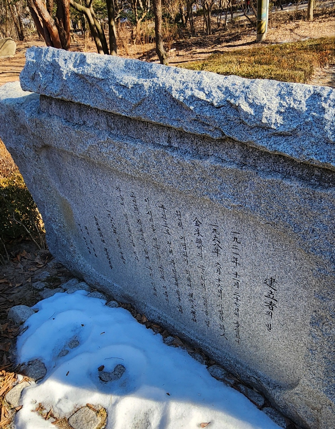 이병주 작가와 술을 마시고 말다툼을 한 뒤 집으로 돌아가다가 교통사고로 죽은 김수영 시인, 시비도 근처에 있는 것을 보면 꽤 친숙했었나 보다. 그러나 하필 말다툼 뒷날 지인의 죽음을 알았으니 얼마나 마음이 황망하고 미안했을지, 아마도 이병주 작가의 마음고생은 오래가지 않았을까 생각된다.