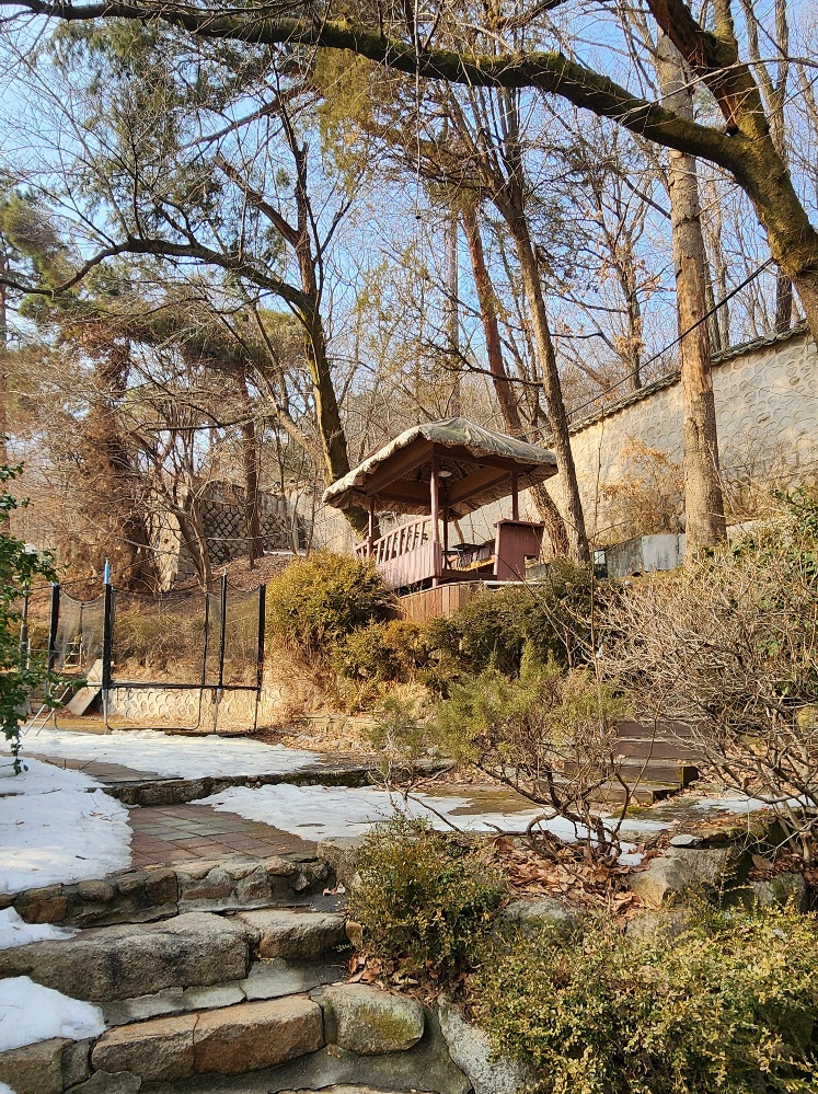 옥상에서 내려오면 뒷마당으로 간다. 뒷마당 역시 한옥의 운치를 여기저기서 누릴 수 있다. 장독대와 멋진 정자도 보이는데 그곳은 일찍 가야 자리를 잡을 수 있다.