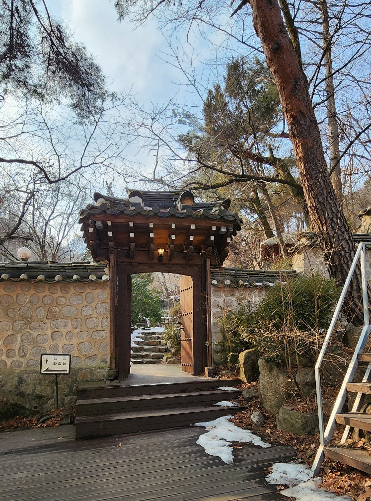 마당으로 내려가 다리를 건너면 또 다른 한옥이 나온다. 그 한옥은 들어갈 수 없지만 다리 위는 포토존으로 줄을 서기도 한다.