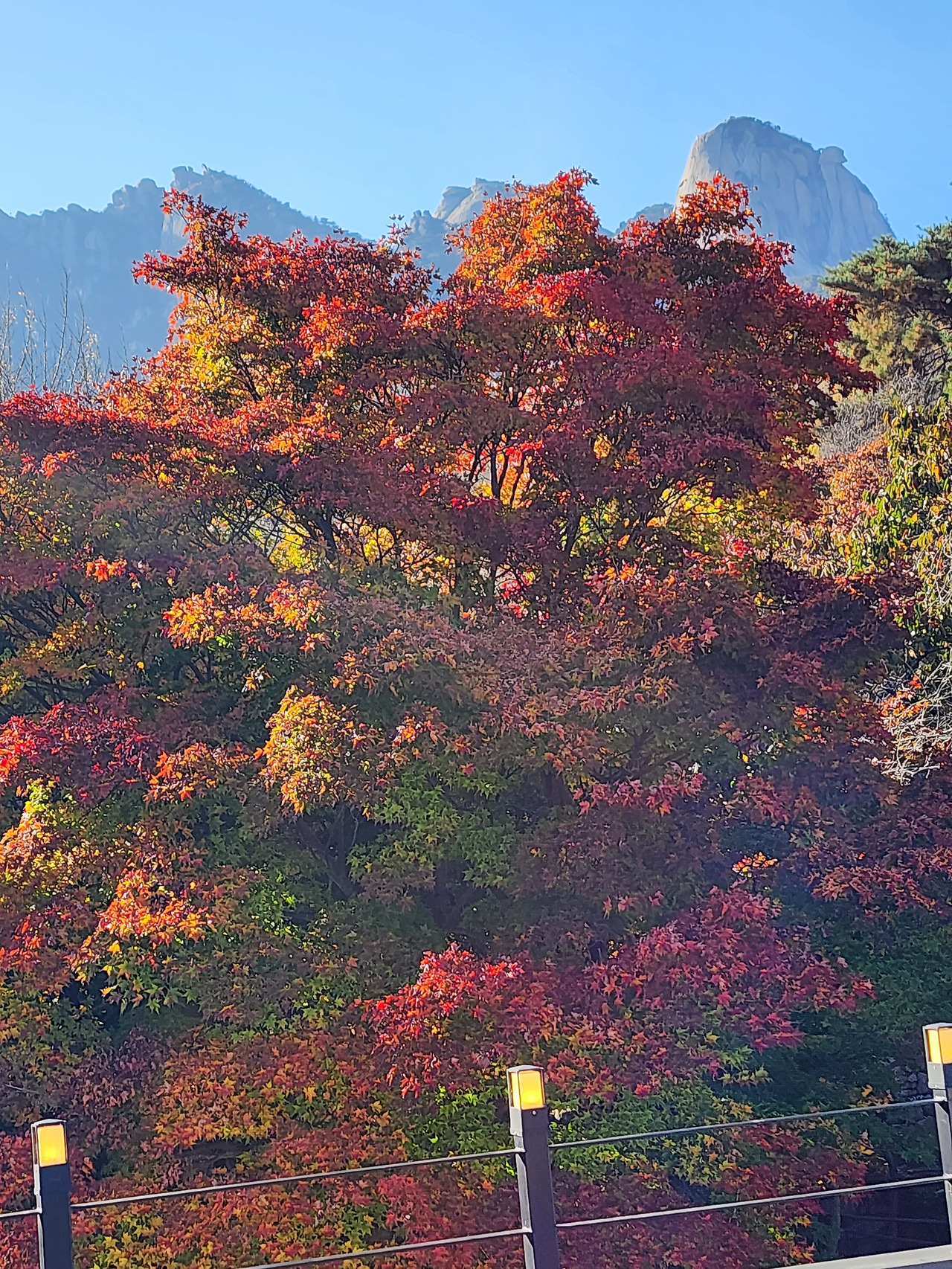 멀리 북한산 백운대가 보이는데 단풍과 함께 사진을 찍으면 인생 사진을 건질 수 있다.