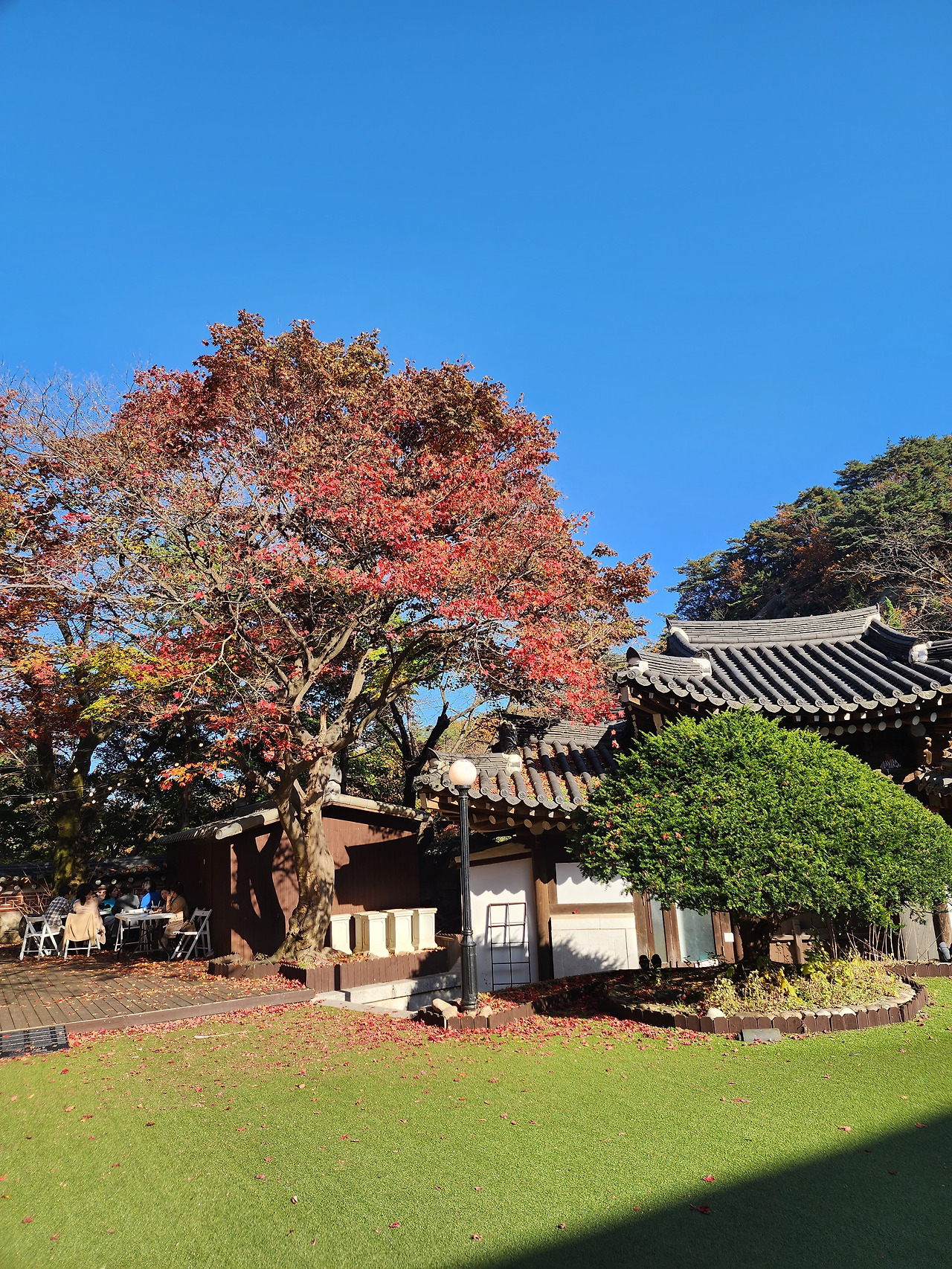 한옥을 둘러본 후 다시 주문 데스크를 지나 왼쪽 옥상으로 올라간다. 봄가을에는 벚꽃과 단풍이 황홀해서 옥상에도 사람들이 몰려있다.