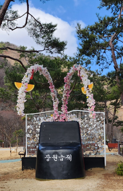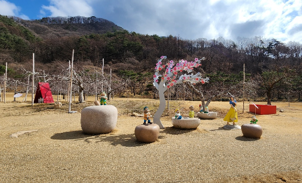 왼쪽으로는 물 맑은 계곡이 있고 가운데로 걷기 좋은 길이 있다. 양옆은 넓은 들판으로 각종 조형물이 있어 포토존으로 손색없었다.