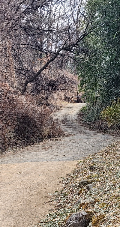 우리는 책바위를 보기 위해 일부러 옛길로 들어섰다. 잘 닦여진 길이 신작로라면 옛길은 좁고 울퉁불통해서 걷기 힘들었다. 그러나 진짜 옛길을 걷는다는 느낌이 들었고 주변 경치와 어우러져 운치가 있었다.