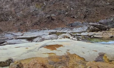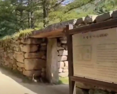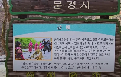계곡에는 아주 넓은 너럭바위가 있는데 이곳은 태조 왕건을 촬영할 때 궁예가 마지막 생을 마친 장소였다. 안내판이 있어 사진을 찍었다.