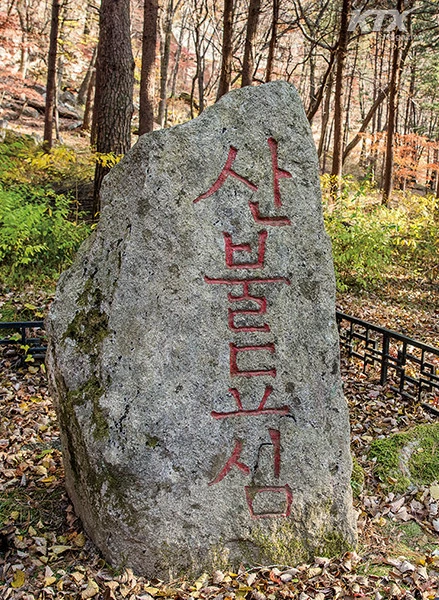 옛날에도 산불은 많이 났었는지 조곡관 근처에는 ‘산불됴심’이란 글씨가 커다란 돌에 새겨져 있었다. 한글로 새겨진 이 비석은 조선 후기에 세워진 것으로 추정된다.