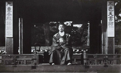 고종은 명성황후를 뒷문으로 피신시키고 시간을 끌기 위해 낭인들이 잘 보이는 문 앞에 나와 서 있었다.