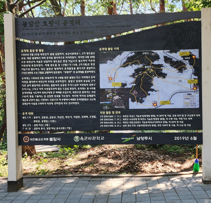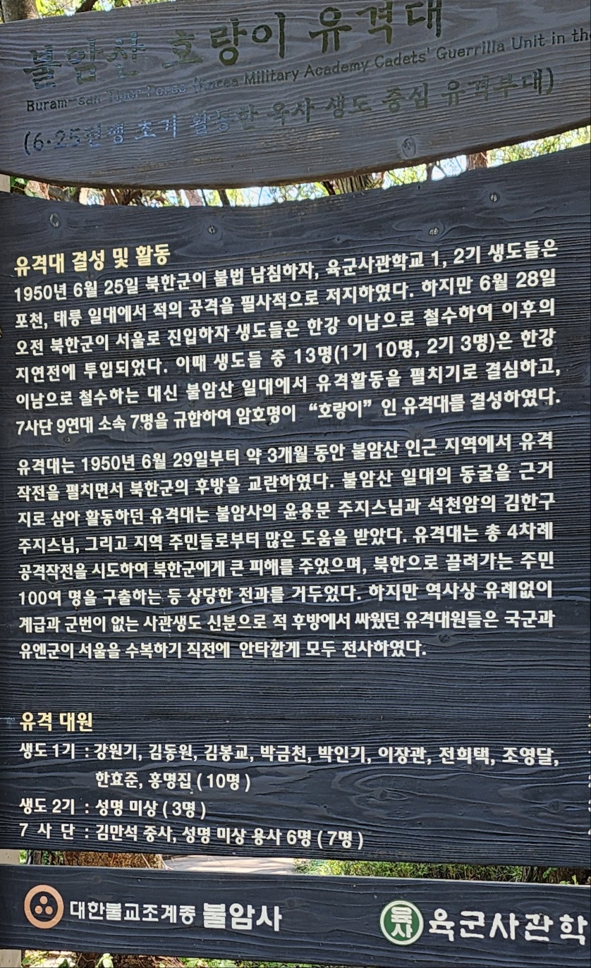 한쪽에는 유격대 결성 및 활동을 자세하게 적은 ‘호랑이 유격대(6.25 전쟁 초기 활동한 육사 생도 중심 유격부대)' 안내판이 있다.