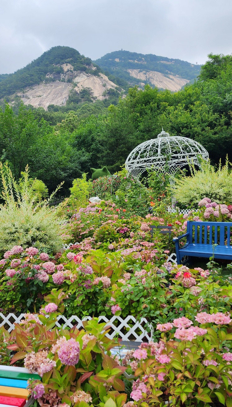 불암산 수국정원을 찾은 날은 월요일이었고 비가 온다는 예보가 있어서 사람은 많지 않았다. 또 월요일은 나비를 관찰할 수 있는 나비정원과 인기 있는 포레스트 카페도 문을 열지 않는 날이었다.