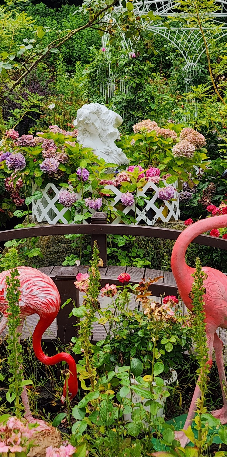 장미와 어울려 화려한 수국정원