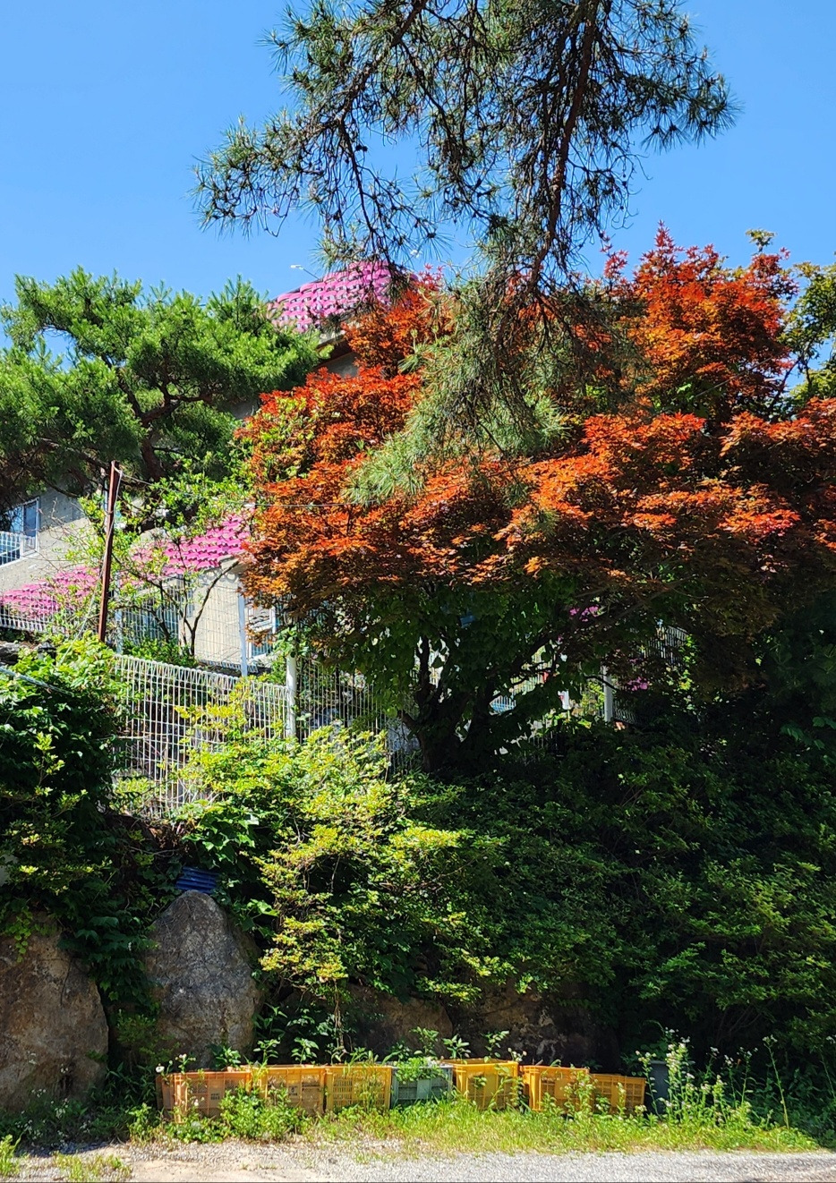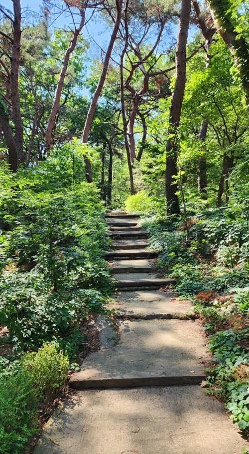 전날 비가 내려서인지 나무들이 진녹색으로 빛났다. 올라가는 길에 꽃에 나비가 날아다니는 모습이 예뻐서 찍어보았다.