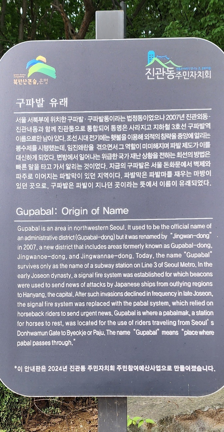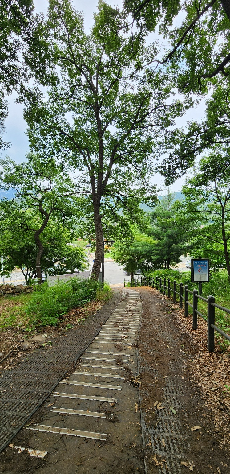 구파발역 2번 출구를 나오면 은평 둘레길 제3코스인 이말산 묘역길로 오르는 계단이 있다.