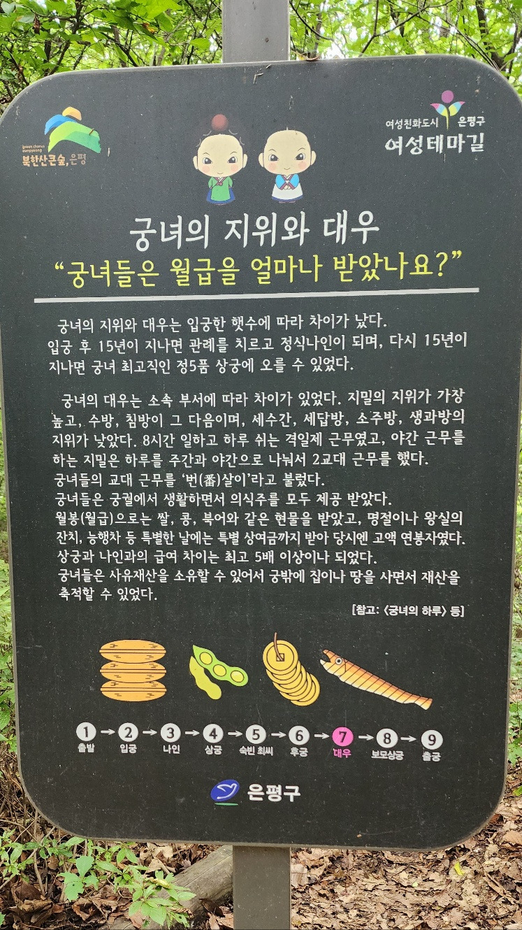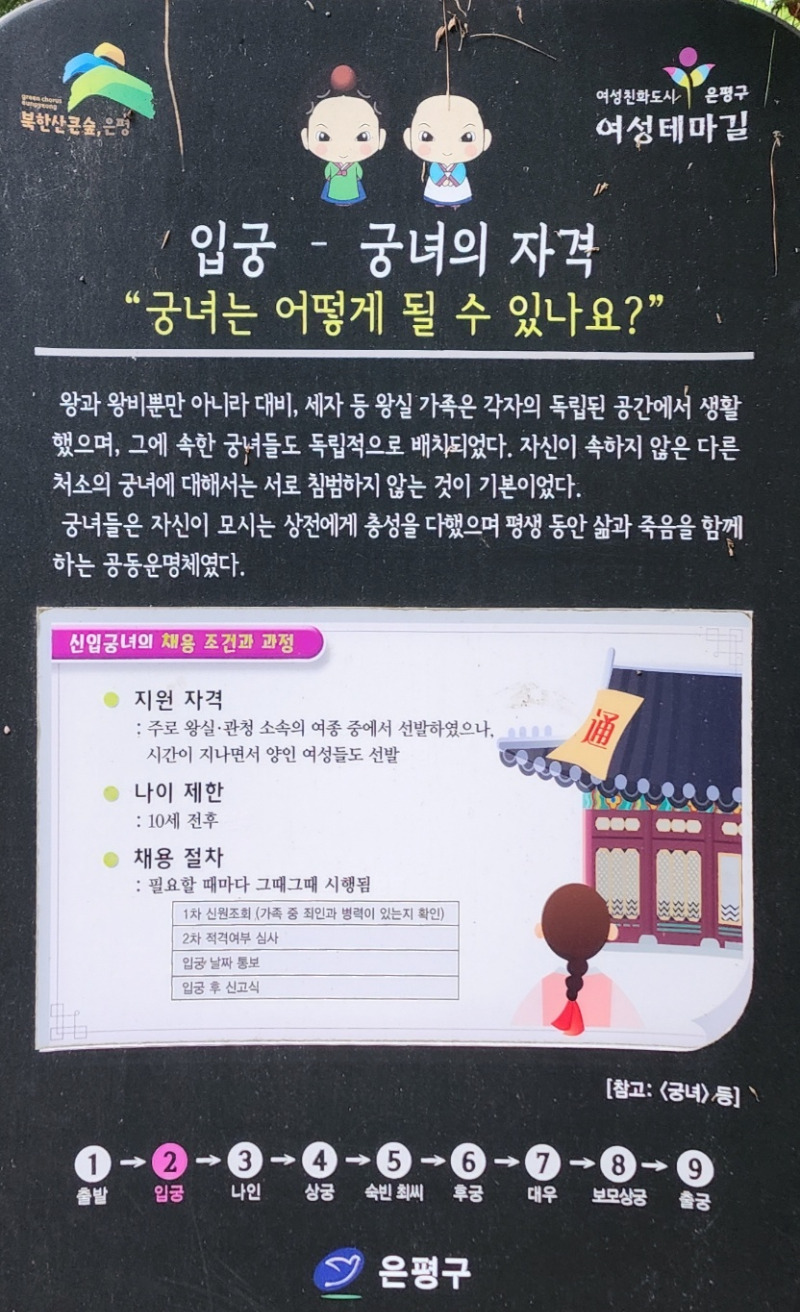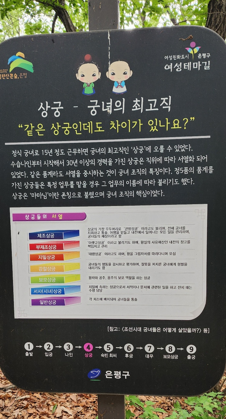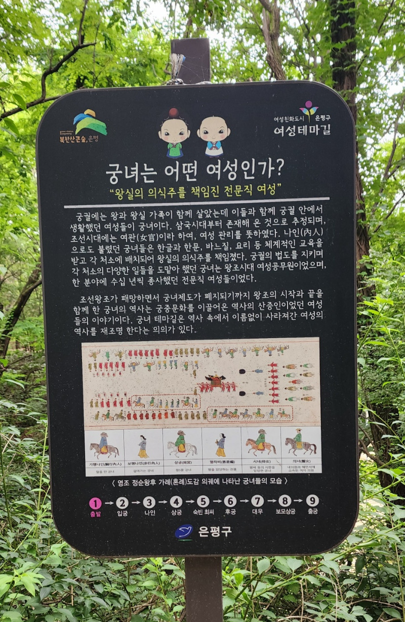 여성친화도시인 은평구에서는 조선시대 왕실의 의식주를 책임졌던 전문직 여성인 궁녀의 이야기를 담아 여성테마길을 조성하였다.