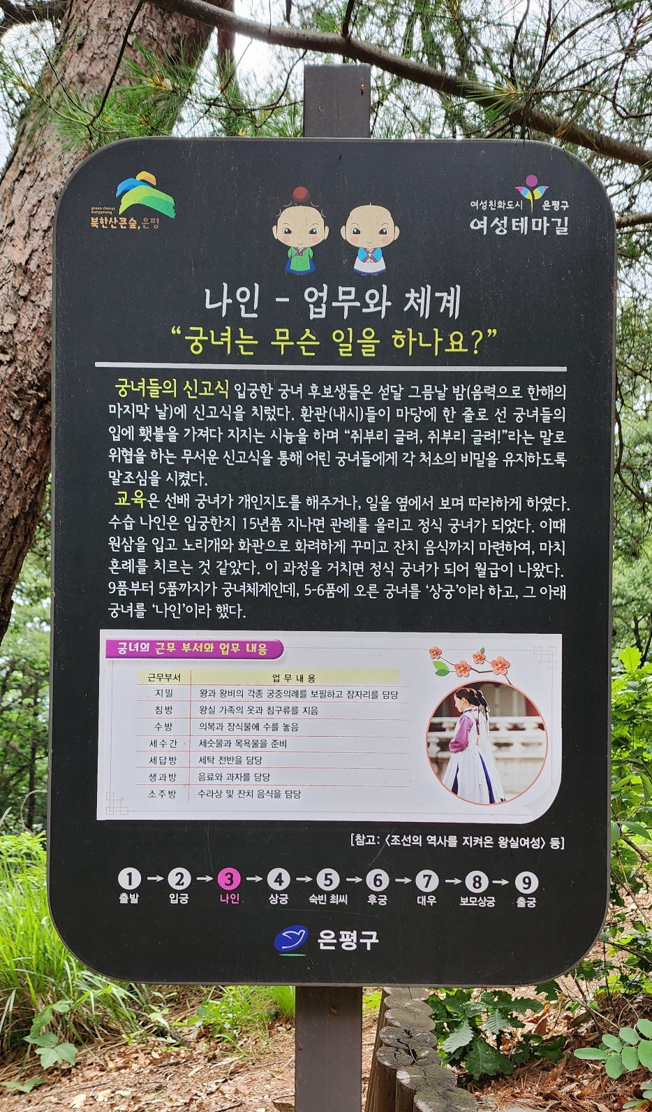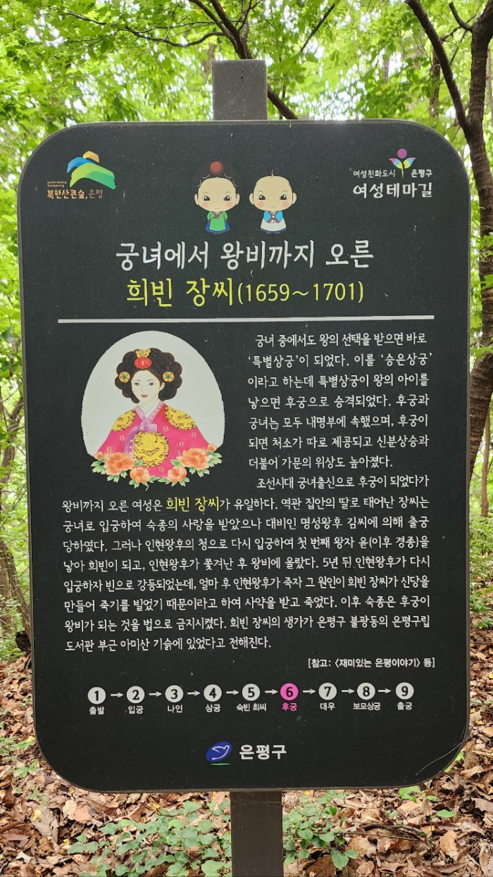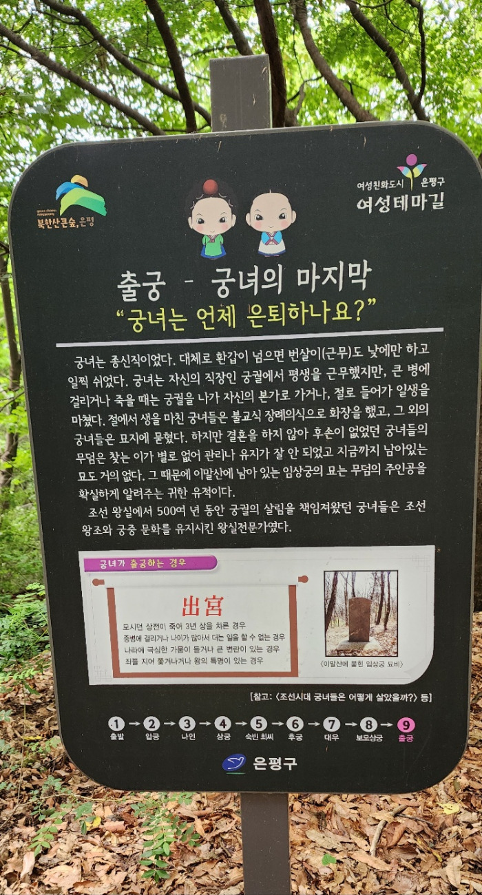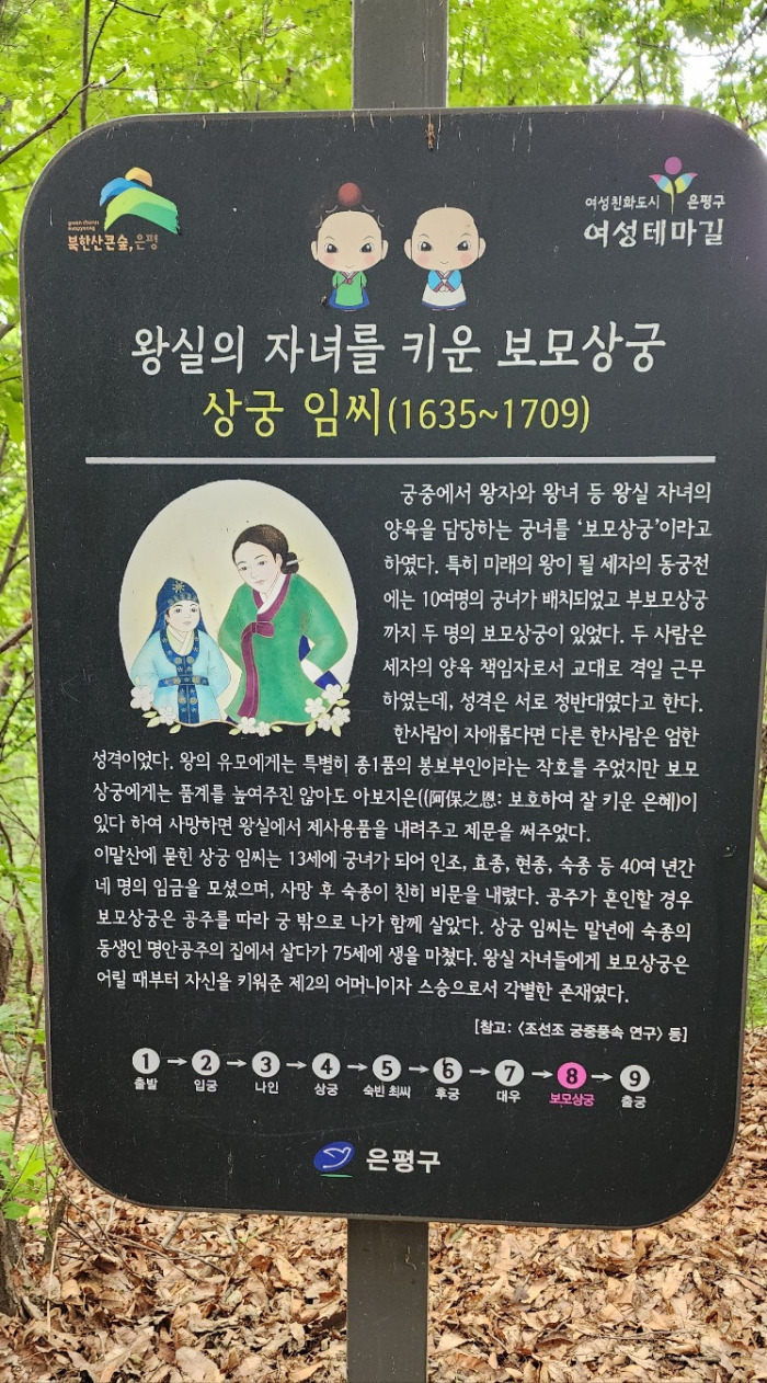 여성친화도시인 은평구에서는 조선시대 왕실의 의식주를 책임졌던 전문직 여성인 궁녀의 이야기를 담아 여성테마길을 조성하였다.