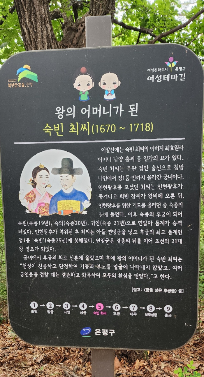 인현왕후가 복위된 후 최 씨는 아들 연잉군을 낳고 후궁의 최고 품계인 정1품 ‘숙빈’(숙종 25년)에 봉해졌다.