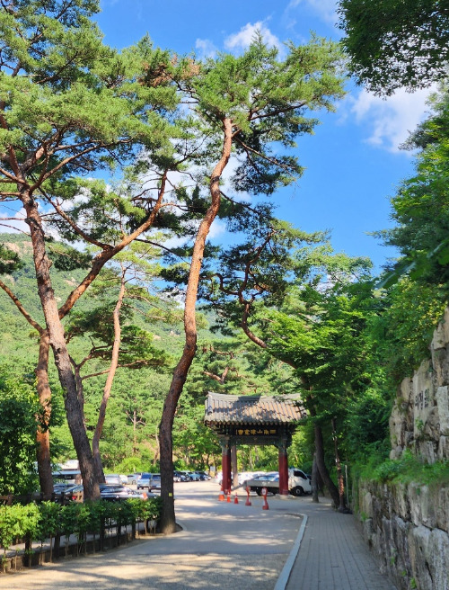 진관사 초입은 조금 특이하게 만들어져 있다. ‘삼각산 진관사’라고 쓰인 일주문을 지나면 주차장이 나온다.