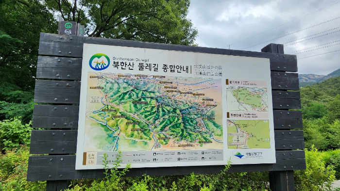 계곡은 들어갈 수 없게 출입금지 안내판이 서 있었다. 이곳에 북한산 누리길이 있다.