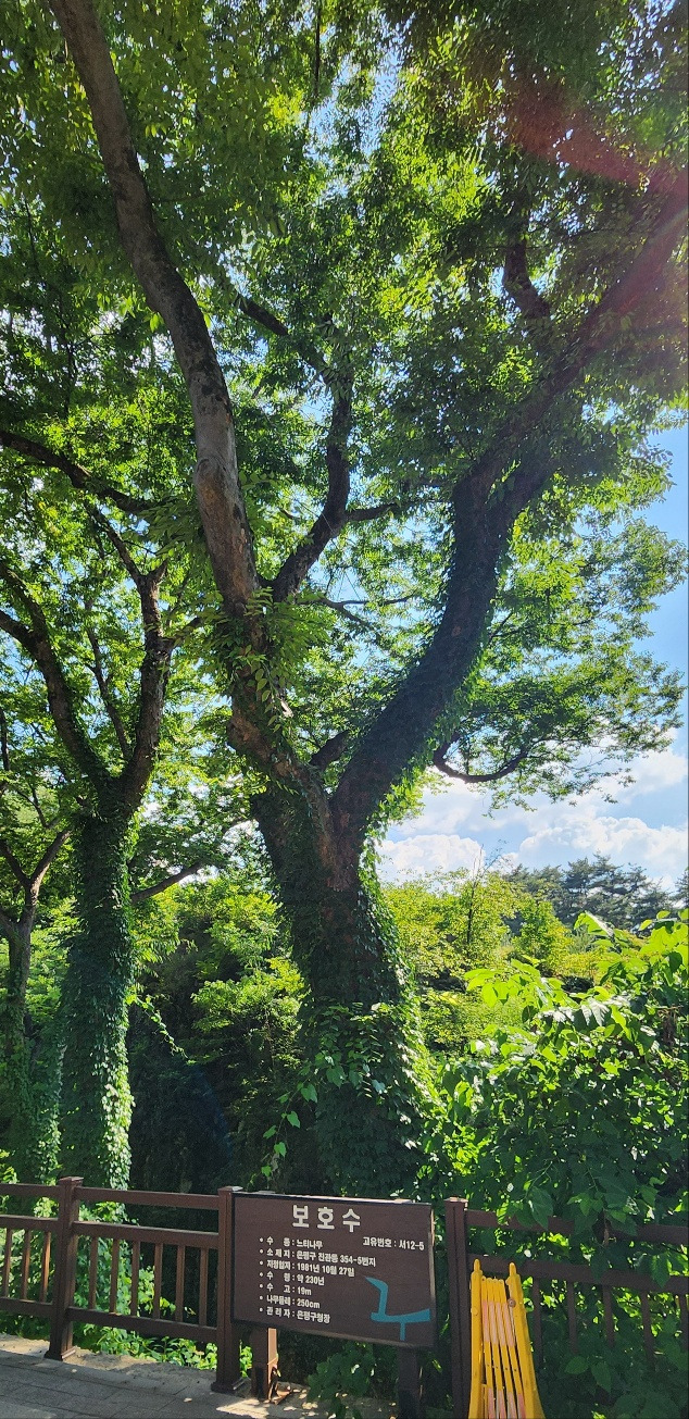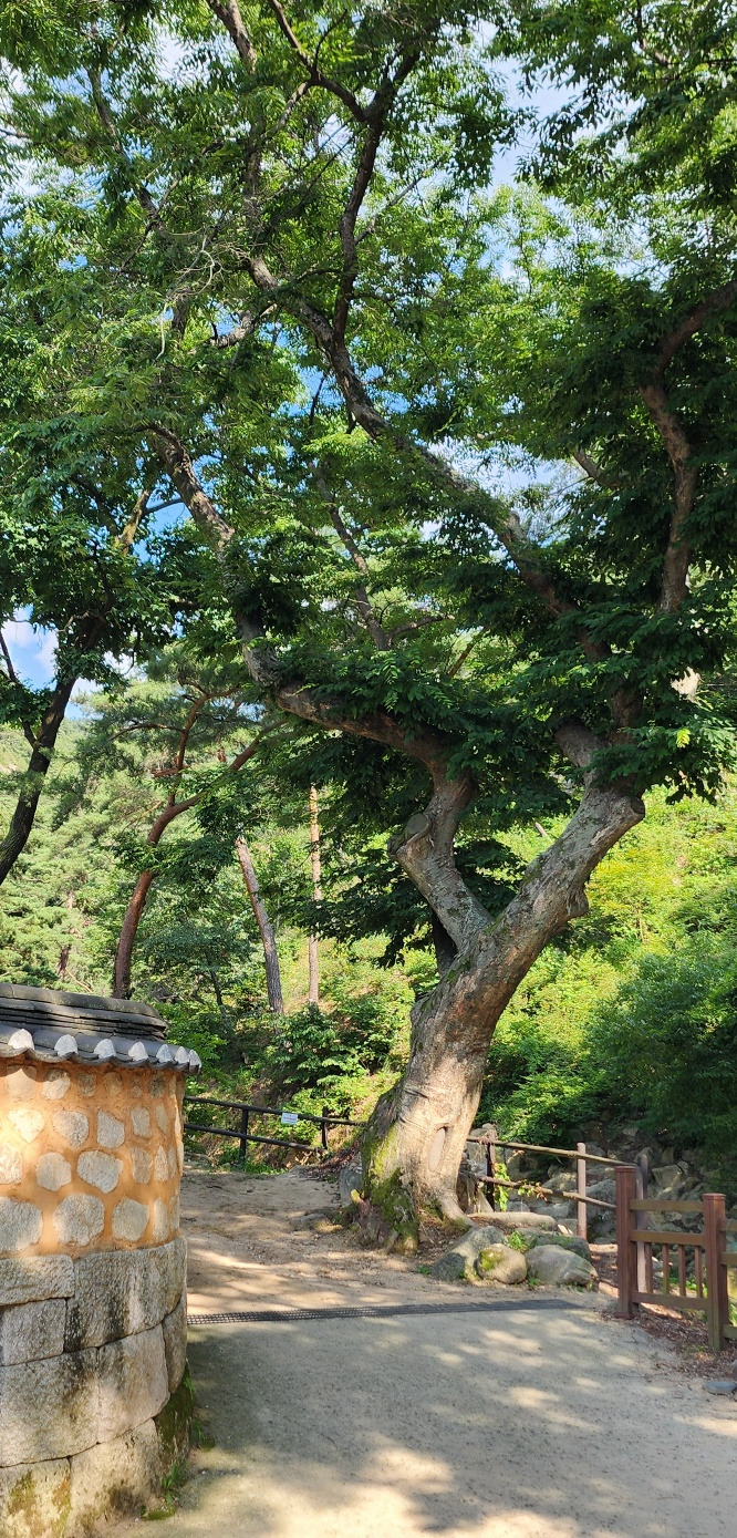 오솔길이 끝나면 갈림길이 나온다. 어느 길로 가든 대웅전으로 갈 수 있는데 사람들이 가는 곳은 오른쪽 길이다. 나도 오른쪽 길로 들어섰다. 이곳에도 230년 된 느티나무 보호수가 그 위용을 자랑하고 있었다.