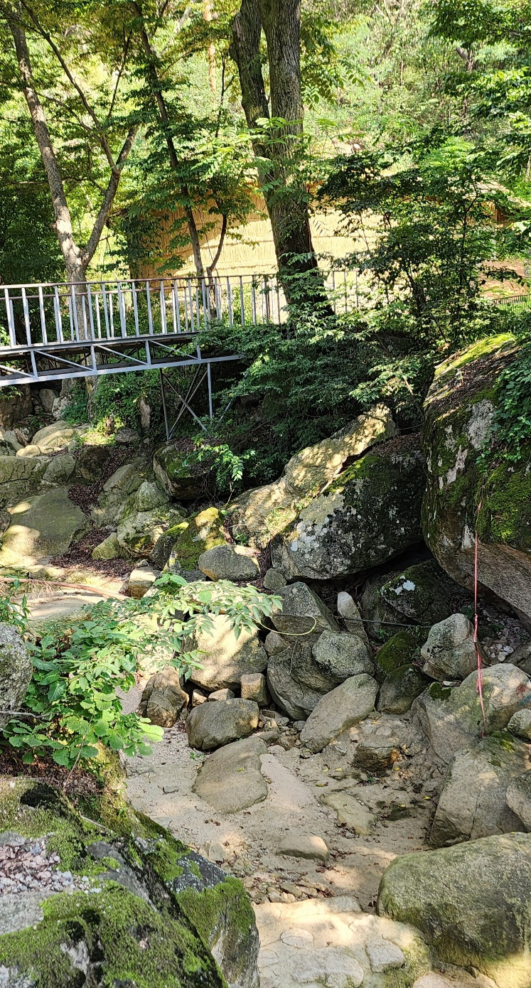 산책길은 오른쪽 계곡을 끼고 걷는데 계곡은 바짝 말라 물이 별로 없다.