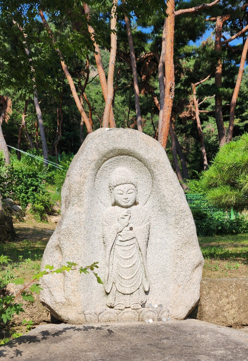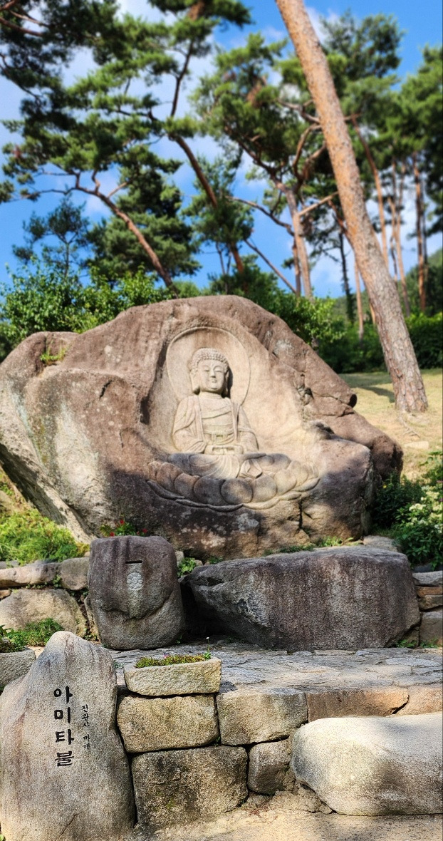 내려올 때는 일부러 오솔길을 이용하지 않고 찻길로 내려왔다. 혹시 놓친 곳이 있을까 해서였다. 역시 이쪽 길에는 올라갈 때 보지 못했던 마애 아미타불이 있었다.