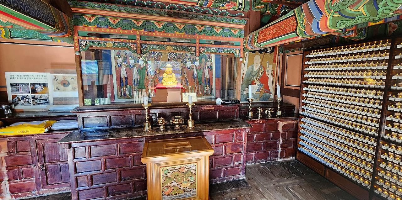 내부를 들여다보니 양쪽 벽면에 가득하게 초가 밝혀져 있었다. 그만큼 칠성각을 찾는 사람이 많다는 증거였다.