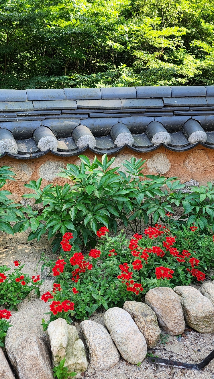 담장과 어울린 나무와 무리 지어 핀 빨간 제라늄도 인상적이었다.
