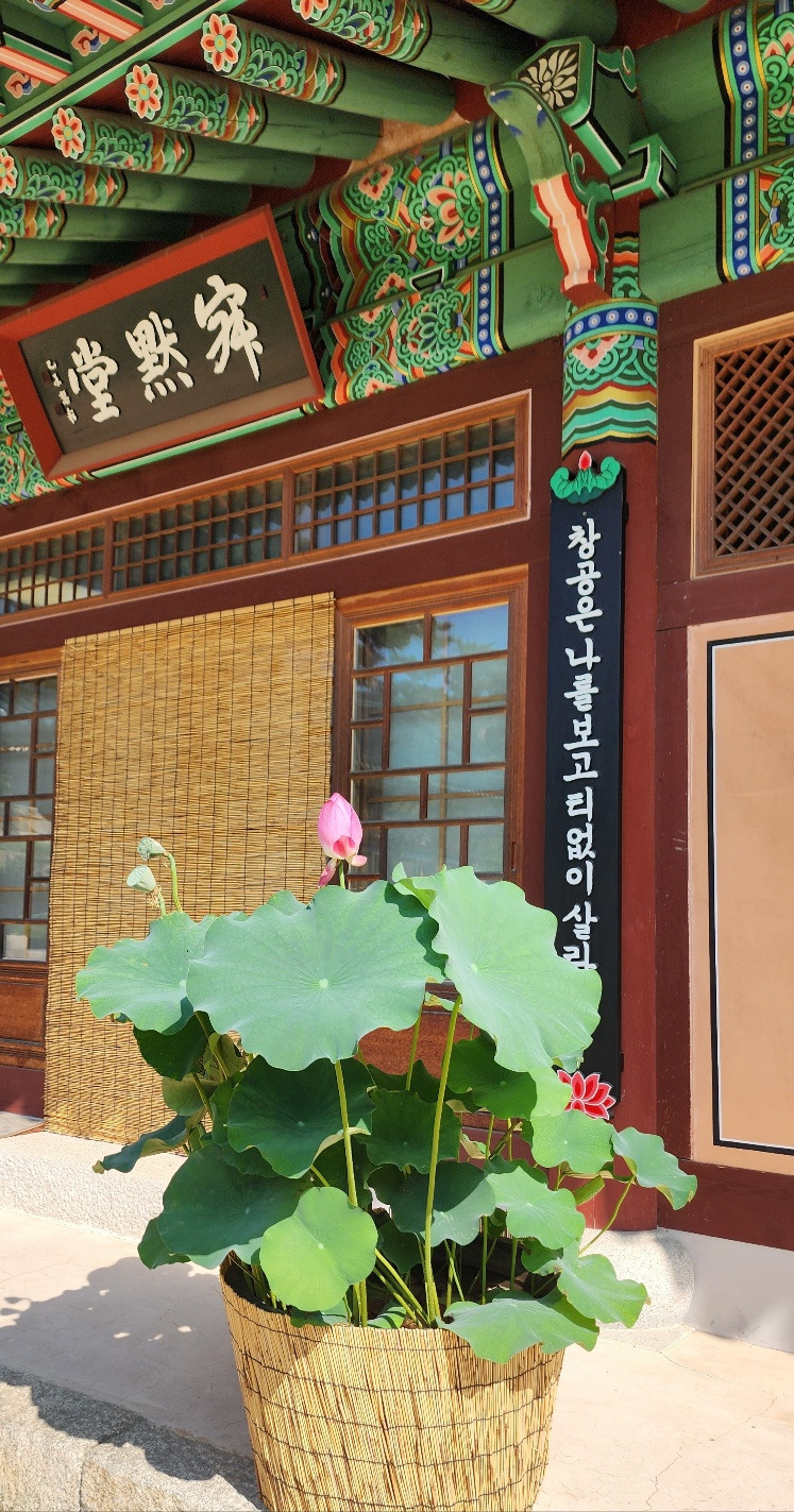 가는 길에 적묵당 앞에 연꽃이 심겨 있어 눈길을 끌었다. 아직 연꽃은 활짝 피지 않았지만, 수줍게 봉오리 맺힌 연꽃이 더 아름답게 느껴졌다.