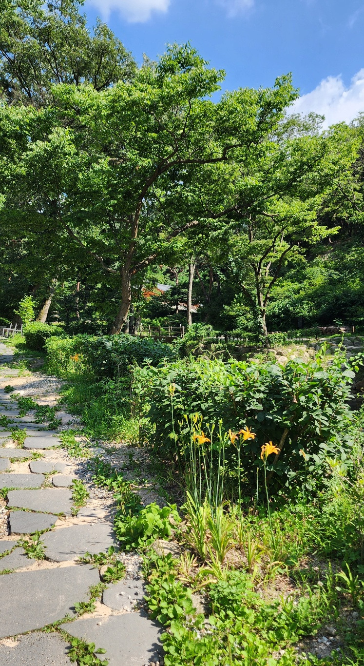좁은 오솔길로 만들어진 길은 산책하기에 안성맞춤이다. 양쪽으로 나무와 무성한 숲이 있고 간혹 꽃이 보인다. 오솔길 주변은 계곡을 따라 걷는데 눈을 들면 북한산이 병풍처럼 둘러서 있다.