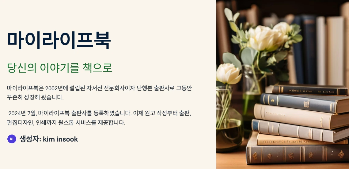 그리고 곧 발간될 신간 두 권을 마무리 지었고 마이라이프북 출판사에서 발간된 책을 서점에 내놓을 준비를 하느라 여기저기 뛰어다녔습니다.