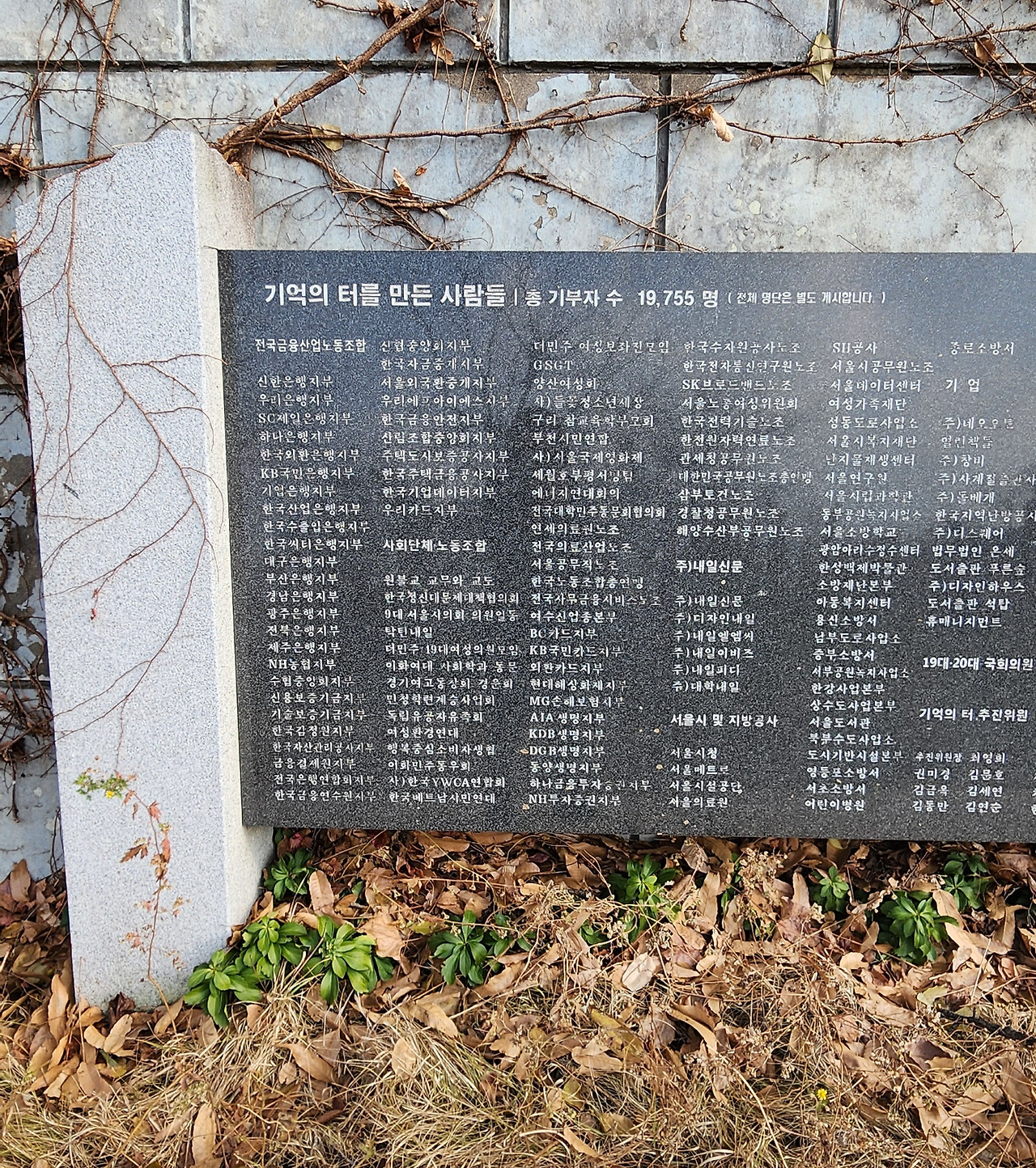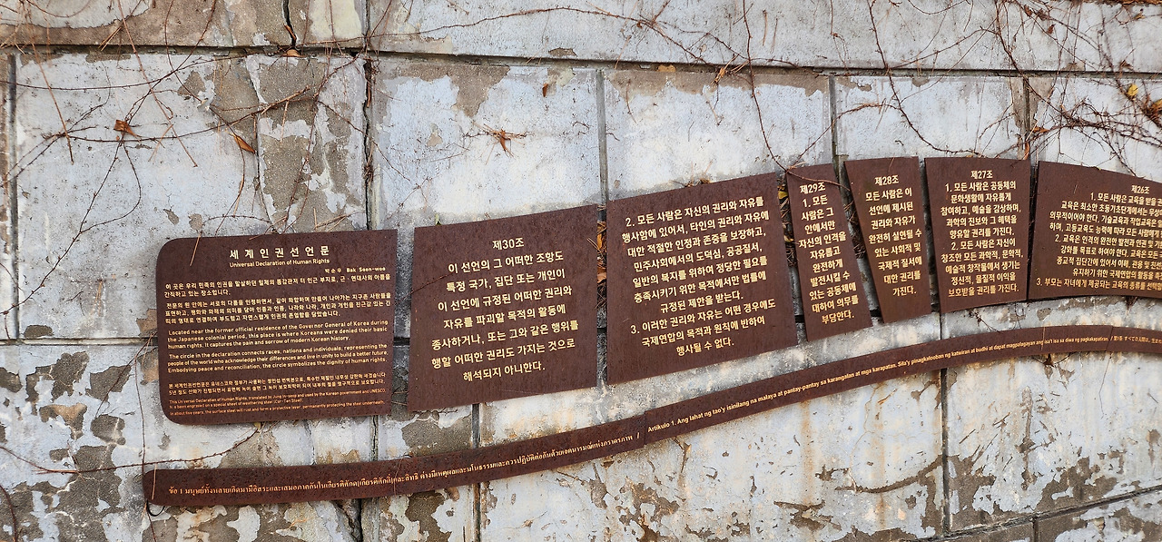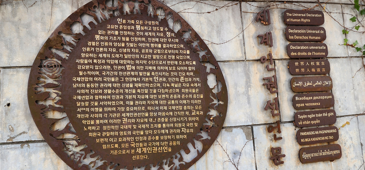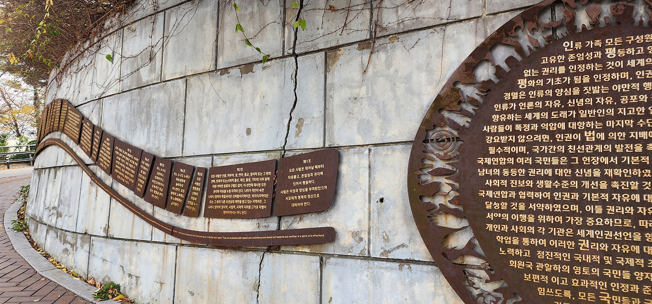 유스호스텔을 지나 코너를 돌자 ‘세계인권선언문’이 벽에 붙어 있었다. 이 길은 남산 민주 인권길로도 불린다. 왜 이 길이 ‘인권길’인지 그 의미를 다시 한번 각인시키는 듯했다. 조금 더 걸으니 기억의 터가 나타났다.