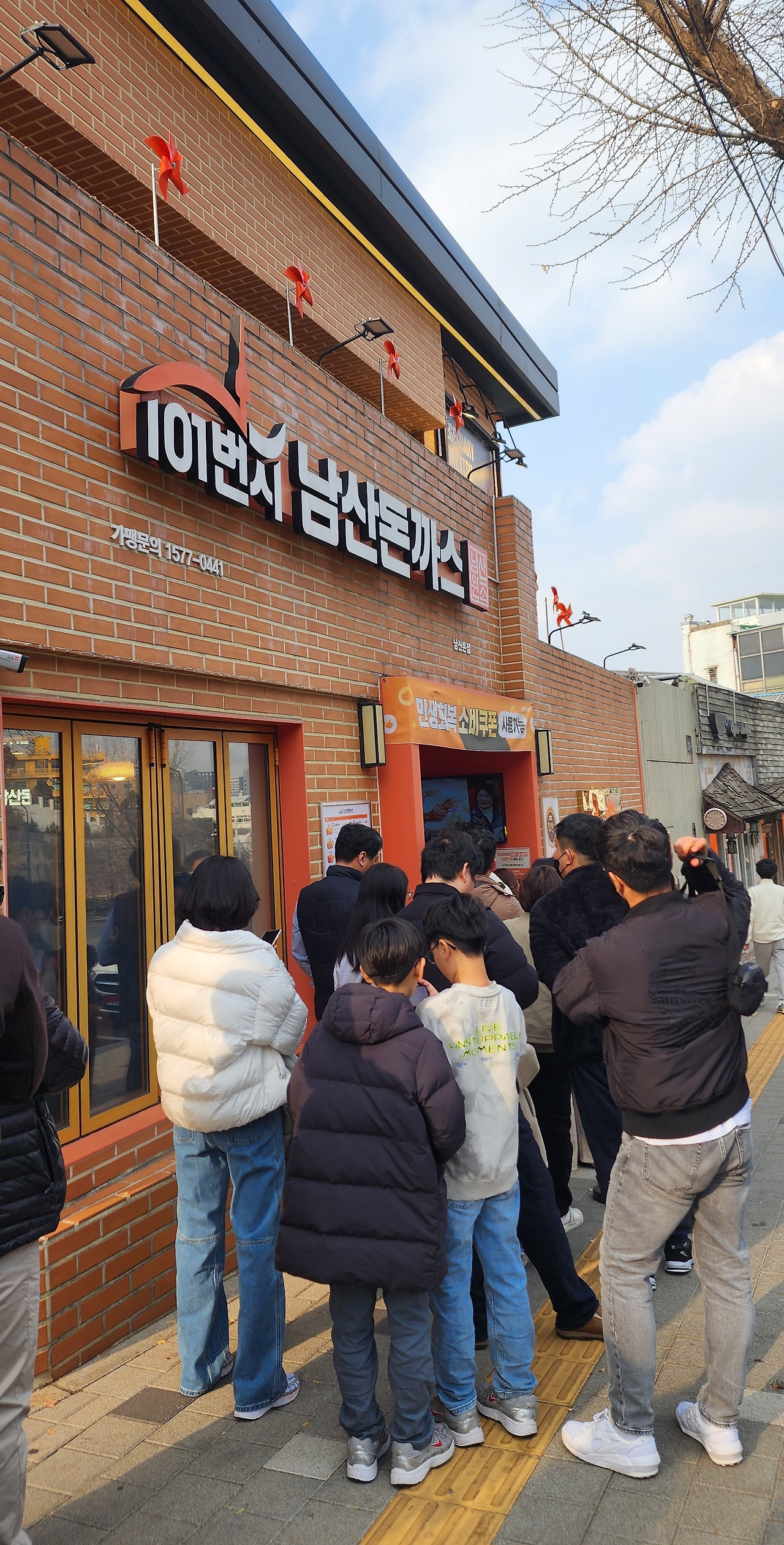 지나면서 보니 다른 돈가스 가게는 한산한데 비해 '101번지 남산돈까스'는 사람들이 길게 줄을 서 있었다. 맛있는 집은 고객들이 가장 잘 아는 법, 무조건 줄을 길게 선 곳에서 먹으면 실패할 확률이 낮다. 진짜 원조 '남산돈까스'는 이곳에서 조금 떨어진 백범광장 근처에 있다.