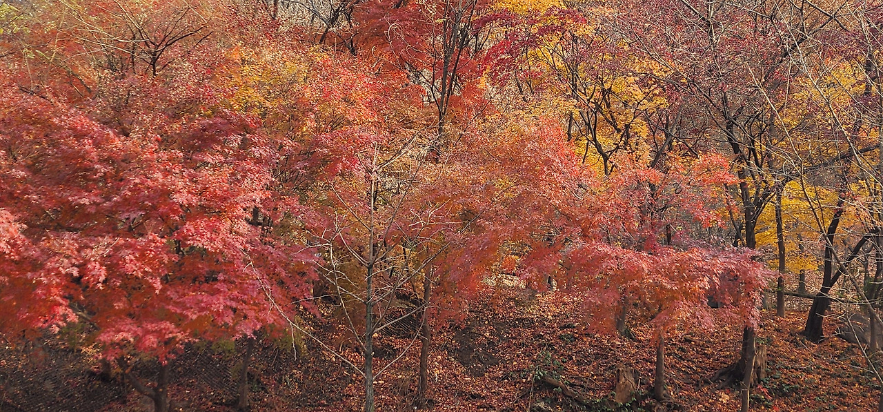 스튜디오 옆은 한적한 2차선 도로다. 나도 처음 가보는 곳이라 휴대전화에 기억의 터를 입력시킨 후 안내를 받아 걸었다. 차도 거의 다니지 않는 도로에 단풍은 거의 다 떨어졌는데 아직 키 작은 아기단풍이 “나를 좀 봐주세요”라고 손을 내밀었다. 앙증맞은 작은 단풍이 기특하고 예뻐서 한참을 들여다보다 걸음을 재촉했다.