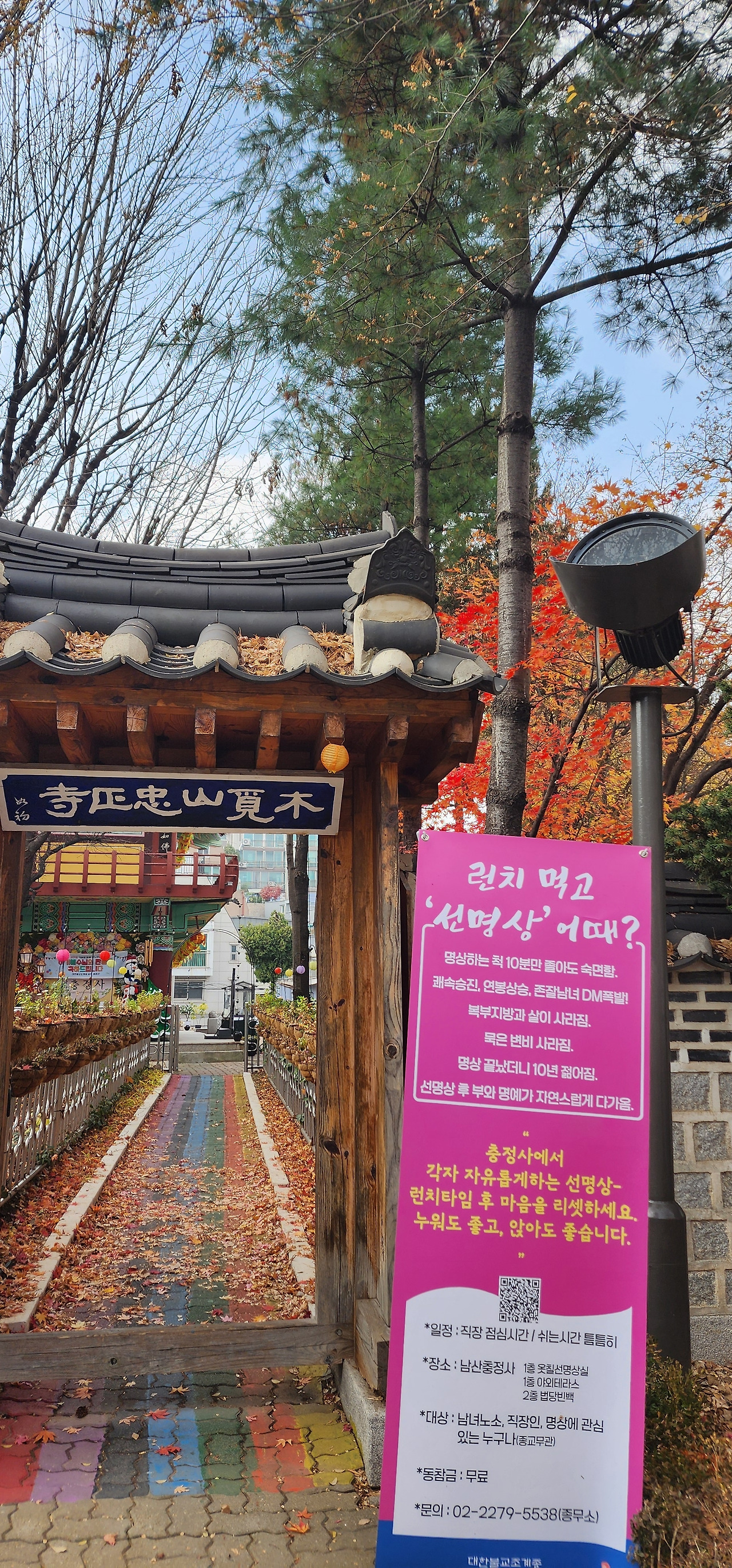 이름은 목멱산 충정사, 한옥마을과 붙어 있기는 하나 엄연히 소속이 다른 절이었다. 그런데 이곳은 음식도 먹을 수 있고 차도 마실 수 있는 공간이었다. 자료는 집으로 돌아와 찾아보았다.
