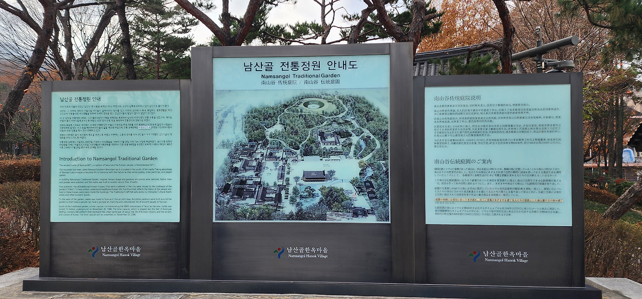 주중에 날이 추워진다는 일기예보를 듣고 날이 비교적 따뜻했던 11월 30일 남산 탐방길에 나섰다. 교회를 다녀오느라 1시쯤 늦은 출발을 했다. 4호선을 타고 충무로에서 내려 가장 먼저 들린 곳은 남산골 한옥마을이다.