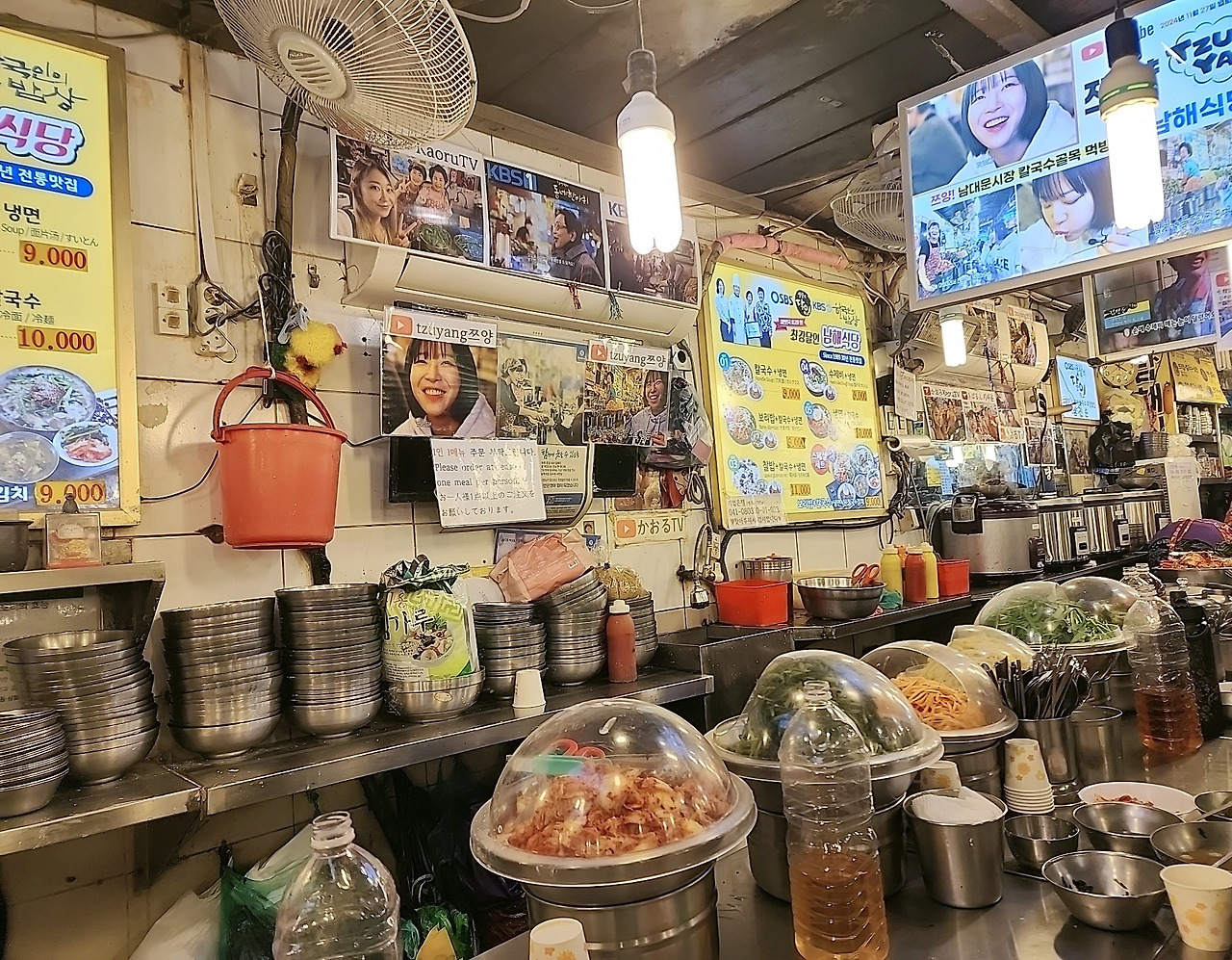 남대문시장 칼국수 골목은 가끔 가는데 식사시간에 가면 붐비는 사람들과 아주머니들의 호객 소리 때문에 칼국수가 코로 들어가는지 입으로 들어가는지 모를 지경이다. 바로 뒤에서 기다리는 사람이 서 있기라도 하면 음식을 먹는 게 아니라 마시는 기분이 들어서 복잡할 때는 이용하지 않는다.
