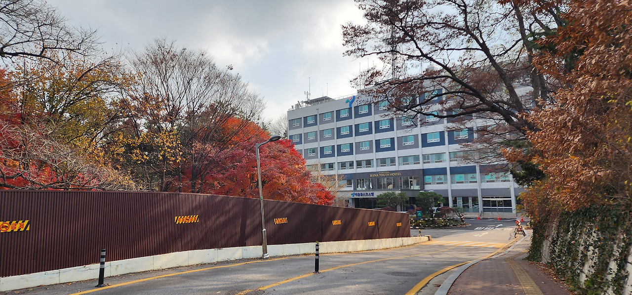 충무로역 4번 출구로 나와 천천히 5분 정도 걸으면 남산골 한옥마을에 갈 수 있다. 입구 사진을 찍고 들어가기 전 오른쪽을 보니 단풍이 아직도 화려했다. 이게 무슨 횡재인가 싶어 건물 안으로 무조건 들어갔다. 그동안 남산골 한옥마을에 여러 번 왔었는데 늘 그냥 지나치던 곳이었다.