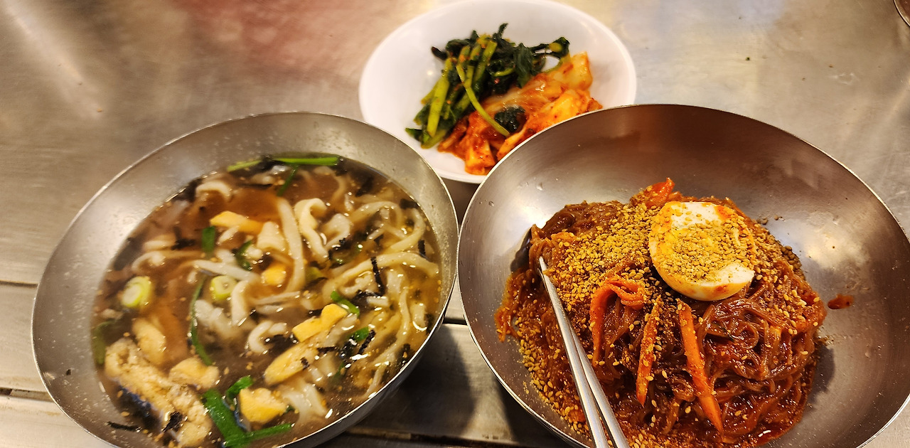 내가 방문한 시간은 4시 40분경, 점심 장사는 끝났고 저녁은 약간 이른 시간이라 자리가 많이 비어있었다. 이곳은 냉면을 시키면 칼국수를, 칼국수를 시키면 냉면을 덤으로 준다. 식사 시간을 피해 가면 들러볼 만하다. 마치 중국집에서 자장면과 짬뽕을 다 먹는 기분이다.