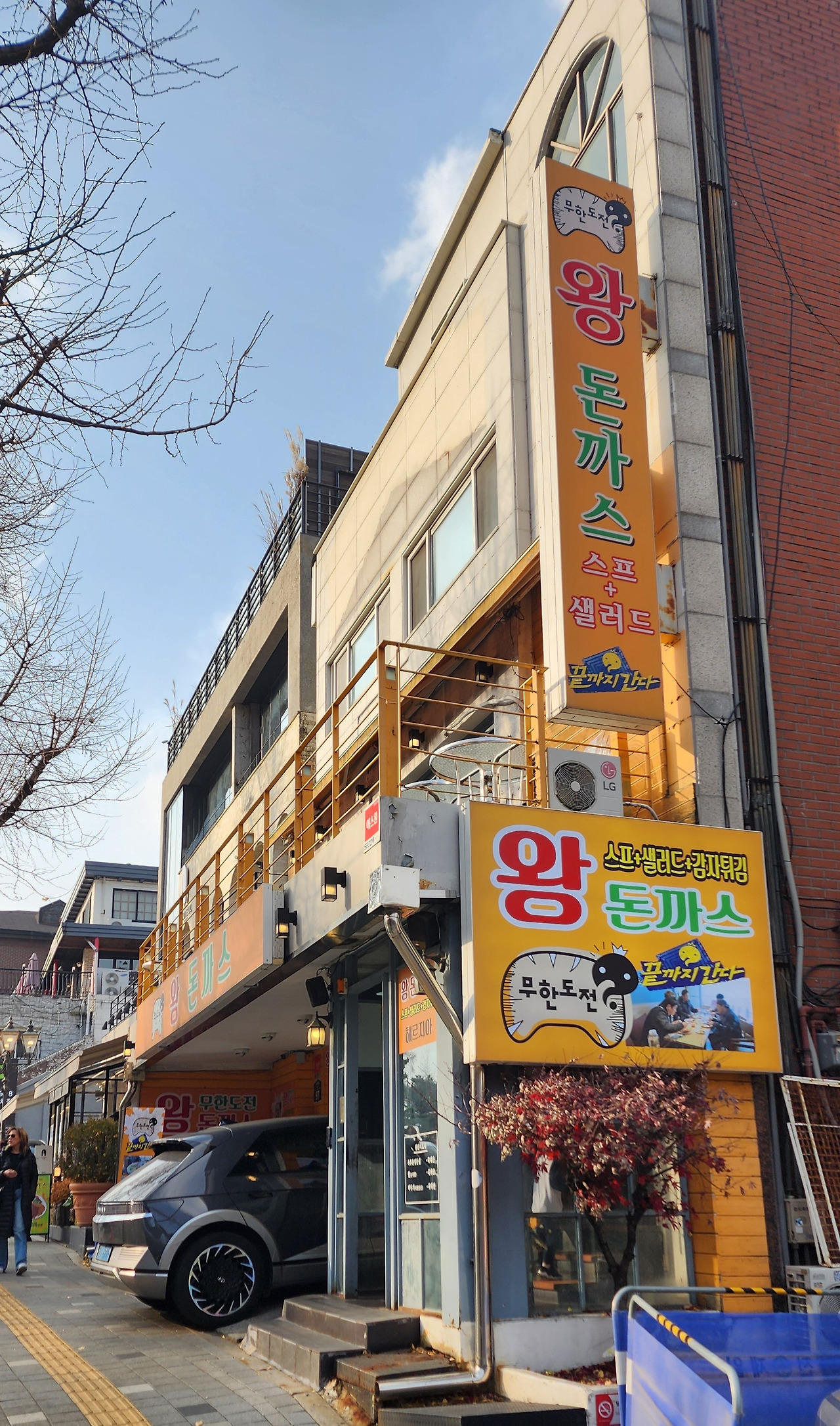 두 학교를 지나 한양공원비까지 가는 길에는 돈가스 식당이 늘어서 있다. 세어 보지는 않았지만 꽤 많은 가게가 있었다. 한때는 남산의 명물 '남산돈까스'를 둘러싸고 '원조' 공방이 치열했다. 기존에 원조라고 알려진 '101번지 남산돈까스'가 원조가 아니고 진짜 원조는 소파로 23번지에 있는 '남산돈까스'라고 두 가게가 법정 공방까지 벌였다.