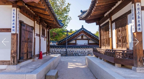 충정사를 둘러본 후 한옥마을로 들어섰다. 정문을 기점으로 왼쪽에는 민속문화유산인 한옥 다섯 채를 이전, 복원하고 해당 가옥에 살았던 사람들의 신분 성격에 걸맞은 가구 등을 배치해 선조들의 삶을 엿볼 수 있도록 만들었다.
