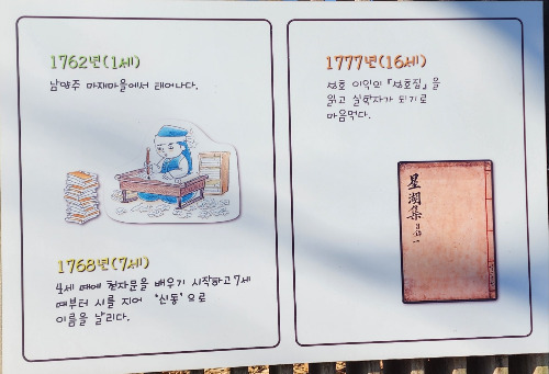 정약용은 아버지가 임지인 화순에서 돌아와 서울에 머물던 중 이익의 유고집인 <성호사설(星湖僿說)>에 푹 빠져들었다.