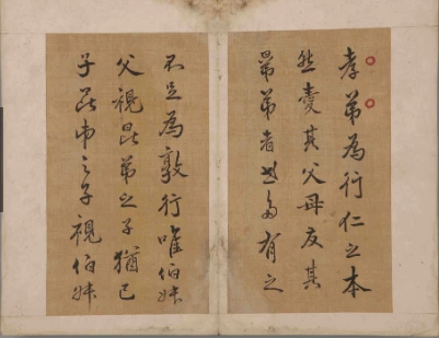 첫 번째 서첩에는 ‘가족공동체와 결속하며 소양을 기르라’라고 적고 있다. 또 효제(孝悌)가 인을 실행하는 근본임을 강조하고 부모 형제간 화목을 당부했다.