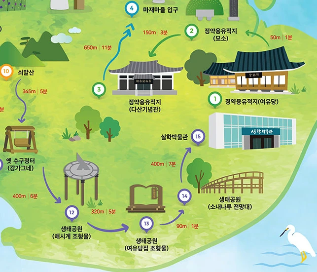 가장 앞에 있는 다산문화관으로 들어갔다. 먼저 안내 팸플릿을 챙겨 갈 곳을 체크했다. 이곳은 오래전에 와본 적이 있는데 그새 훨씬 넓어지고 많이 바뀌어서 꼭 처음 온 것 같은 느낌이 들었다.