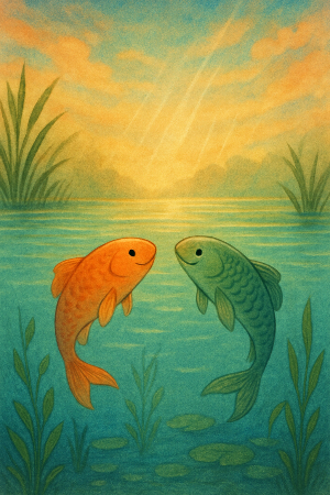 수초 사이를 누비며, 서로의 속도를 이해하며,