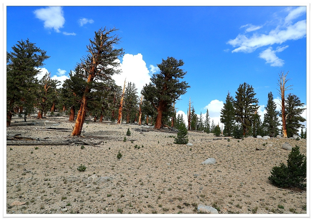 걷어 가는 길의 앞은 내일 넘게 될 JMT에서 가장 높은 패스엔 포레스트 패스가 떡하니 앞을 가로막고 있는데 그 바로 앞에 까마득한 언덕을 올라서면 오늘 캠프장이 자리 잡고 있다. 빤히 보이는 곳이지만 3,500m를 넘긴 고산에서는 어깨를 짓누르는 배낭 무게로 몸은 물 먹은 솜처럼 무겁기만 하다. 한걸음 한걸음 한 땀 한 땀 오르면서 인내심이 극에 달할 때쯤이면 도착하게 된다. 포레스트 캠핑장에 도착하니 오후 5시 45분이다. 먼저 와서 탠트를 쳐놓은 분이 있다. 생각을 더듬어 보니 3일 전 기요크릭 사이트에 늦게 도착해서 저녁식사 준비할 때 시끄럽다고 조용해 달라고 말씀하신 할아버지시다. 올해 몇 살이냐고 물어 64살이라 하니 67세라고 하면서 아직 한창때 란다. 그는 샌프란시스코에 왔다고 했으며 3번째 JMT를 걷고 있다는데 경륜에 나오는 연륜이 느껴진다.
