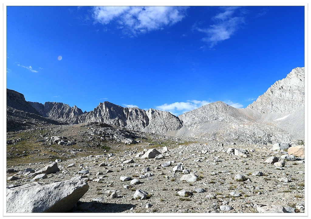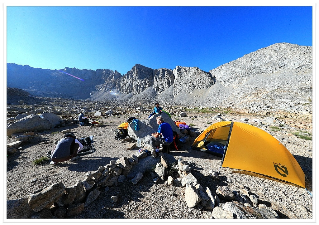 해가 긴 여름이라 아직 일몰시간까지는 여유가 있다. 3,810m 고산에서는 행동은 천천히 해야 한다. 1.5배속 비디오 속의 인물 같이 천천히 움직여야 한다. 탠트를 친다고 돌을 옮기려고 일어났다 앉았다 해도 숨이 가빠 온다. 확실히 3,800m의 높이는 고소를 느끼게 되는 높이이다. 휘트니 정상 4,418m를 다녀와도 고소가 버겁게 느껴진다.