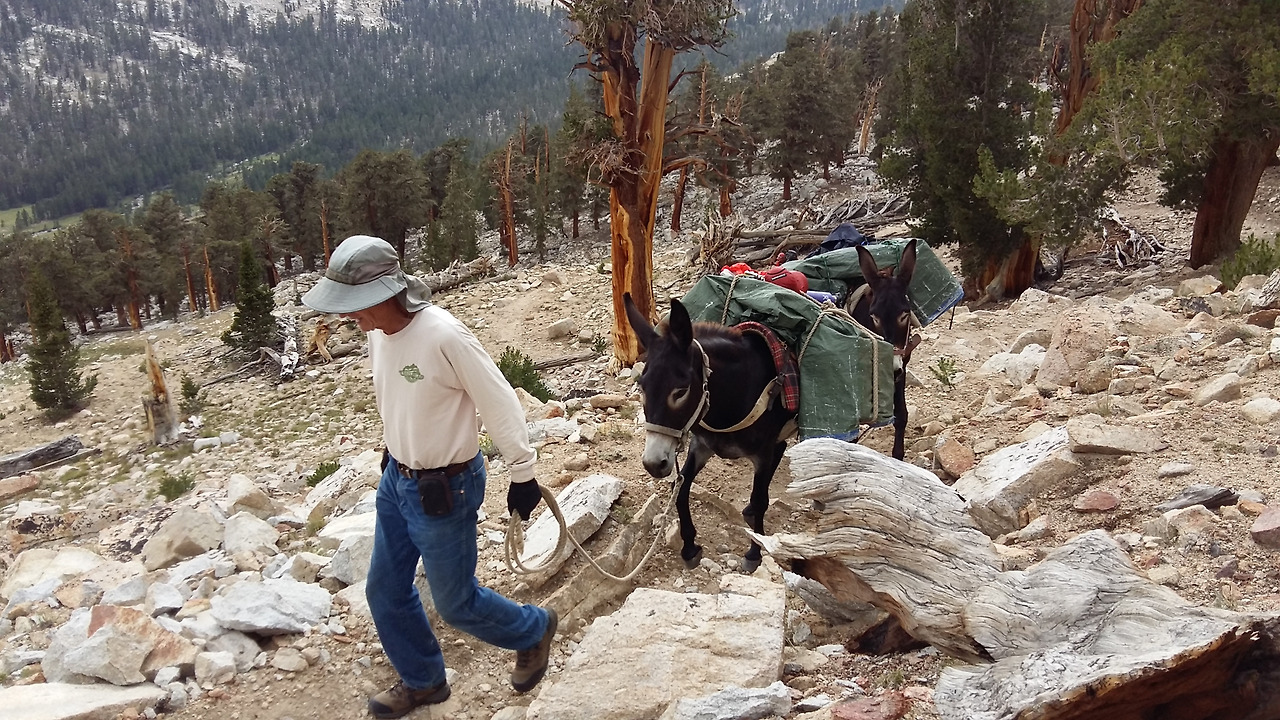 하이 시에라 트레일(High Sierra Trail) 갈림길까지는 일반 트레커가 많았는데 그곳 삼거리를 지나자 JMT트레일러만 남는다. 그중에는 한 트레커는 당나귀에 짐을 싣고 걷고 있는 부부가 있다. 짐이 버거우니 당나귀를 이용하는 트레커다. 그만큼 JMT는 무게에 대한 중압감이 큰 트레일이다.