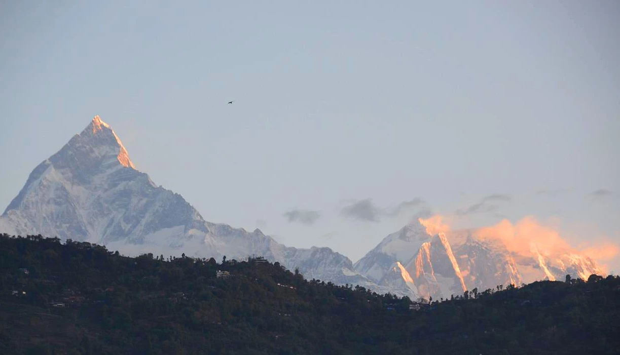 아침 산책은 폐와 호수를 어슬렁 걸었다. 포카라는 인도 여행에 지친 배낭여행자들이 휴식을 위해 많이들 찾는다. 휴양 도시답게 페와 호수는 지친 육신과 마음을 치유해 준다. 어제는 비가 내려 마차푸차레가 보이지 않았다. 청명한 아침에 또렸한 민낯을 보여 준다. 네팔인들이 신성시하는 그 봉은 하얀 얼굴로 분단장을 하고 내려다 본다. 푸른 산 위로 유난히 높이 있는 설산들이 병풍처럼 포카라를 감싸고 있다.