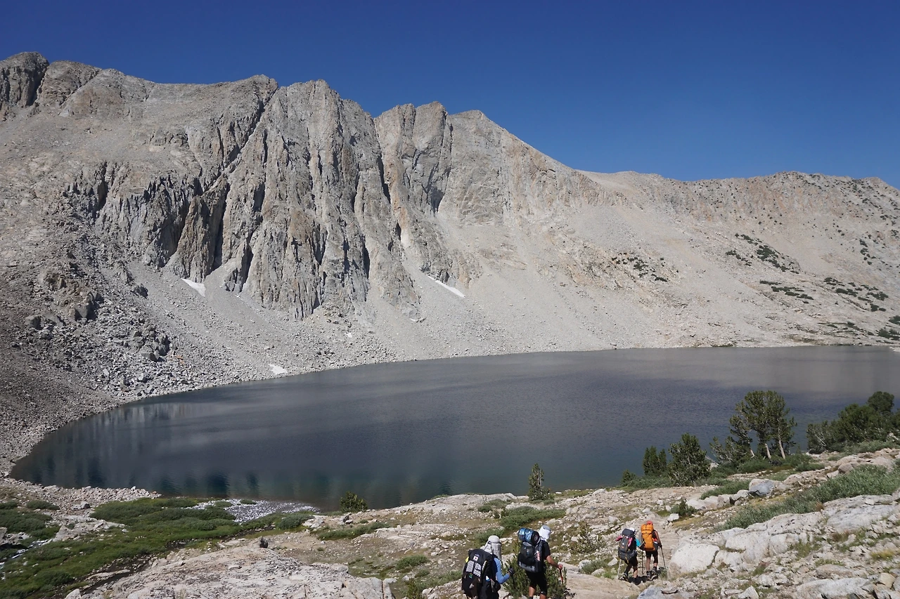 당시 핀쇼와 뮤어를 생각하면 4시간을 걸어 오른 핀쇼 패스에는 남으로 진행하는 트레일러들이 먼저 올라와 쉬고 있다. 이곳에서 걸어온 길과 걸어서 갈길이 한눈에 내려다 보인다. 패스 바로 아래에는 미조리 호수가 크게 자리하고 있다. JMT가 아름다운 것은 높은 산속에 호수가 있어 더욱 아름다움을 준다. 만약 물이 없다면 아름다움이 많이 반감되었을 것 같다.