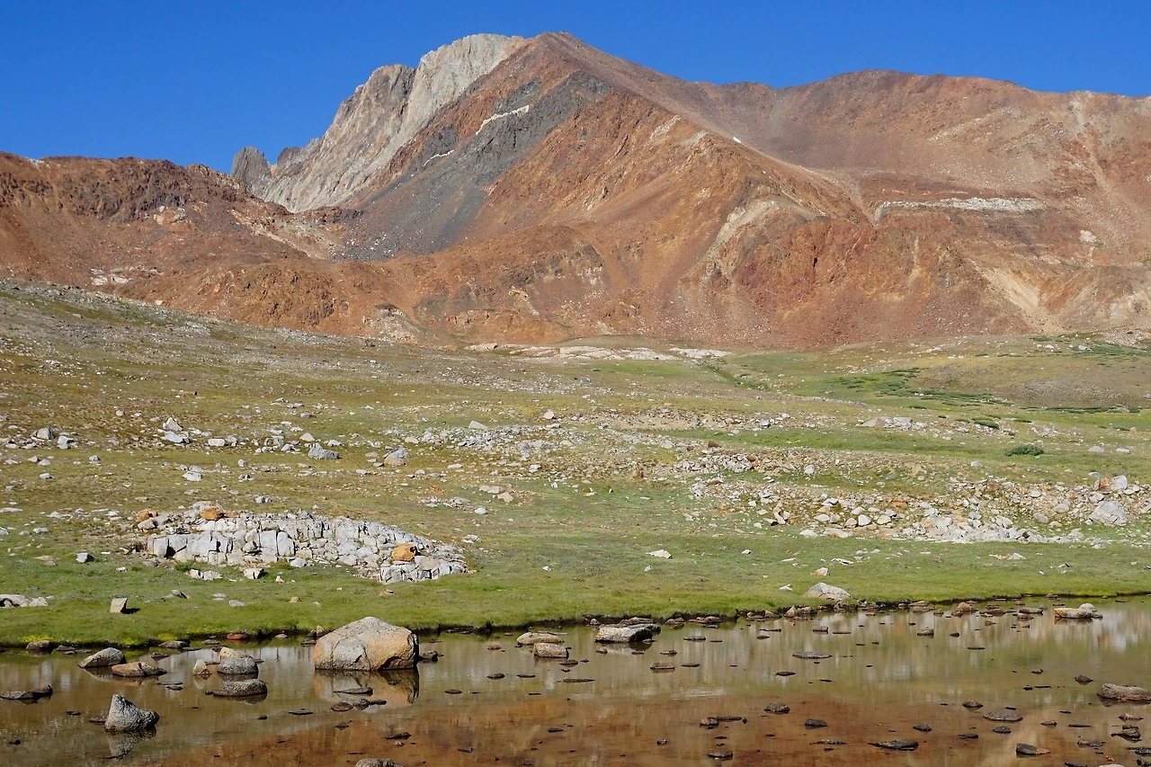 연속되는 오름에 힘들어지면 묵언수행의 시간이 된다. 힘겨운 오르막에 고소까지 느껴지니 한걸음 한걸음이 새삼스럽다. 체력을 아끼기 위해 천천히 움직여 에너지 절약형 걷기를 한다. 뱃속만 든든하면 힘을 좀 써 보련만 지금은 이렇게 걷는 것이 최선이다. 수목한계선을 지나니 붉은 색깔의 산줄기들이 이어지고 그중 가장 낮은 곳이 핀쇼 패스다. 지금까지 보아 오던 흰색 화강암이 아닌 붉은색을 띤 산이 이채롭다. 서부영화에서 보던 말 탄 카우보이가 떠오르고 서부개척시대를 연상하게 하는 풍경이다.