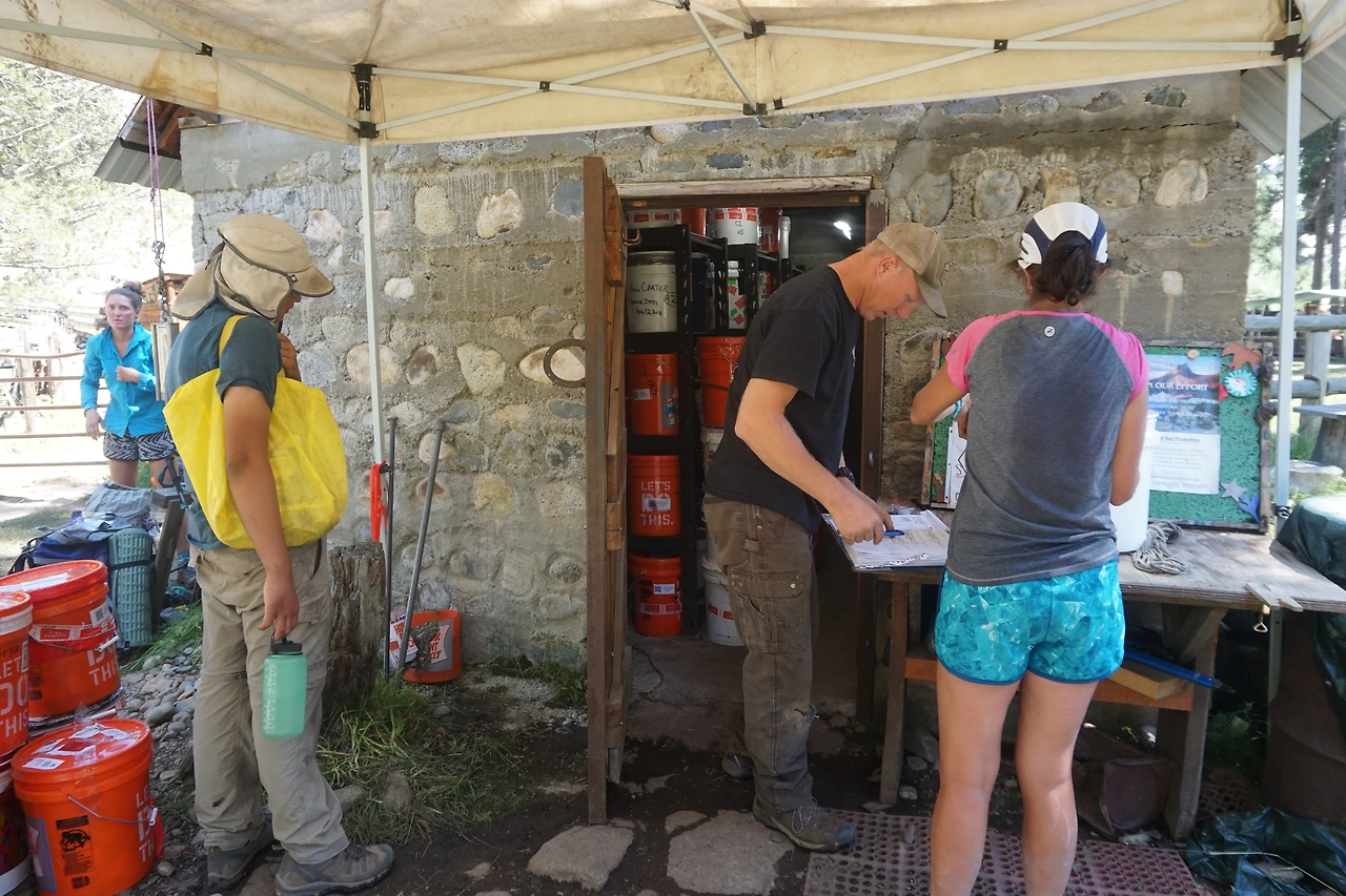 여기 오는 길에 남진하는 트레커를 만나면 궁금했던 것이 뮤어 렌치에 가면 햄버거와 콜라를 먹을 수 있느냐고 물었는데 글세요? 였다. 햄버거와 콜라에 대한 기대로 부지런히 걸어왔는데 햄버거의 '햄'자도 구경할 수 없는 뮤어 렌치다. 뮤어 렌치는 우편으로 보낸 식량이나 보급품을 받을 수 있는 곳으로 여기까지 배달되어 오려면 차에서 내려 배를 타고 호수에 도착하면 호수는 배로 건너고 호수에서 다시 말 등짐으로 운반되어 온다.